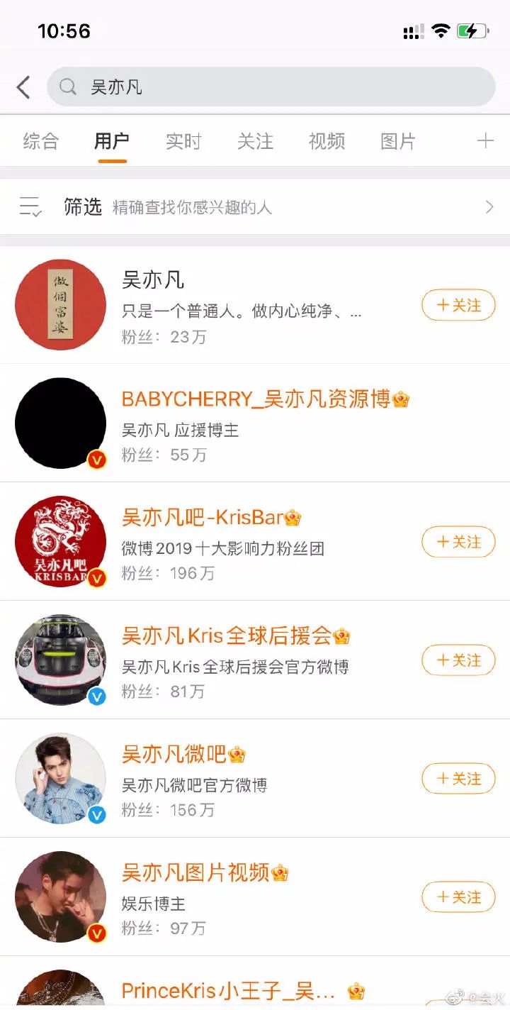 目前在微博中搜索“吴亦凡”及“吴亦凡工作室”,均已无法显示对应帐号。