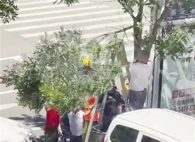 “这里有人在修剪树木,修剪树木者的穿着打扮不像是园林部门的人。之前我看新闻了解到私自修剪树木是违法行为,会破坏树木的成长。”7月30日11时许,一名市民向新城区城市管理综合执法局的执法人员反映,比塞塔商业街上有人私自修剪树木。