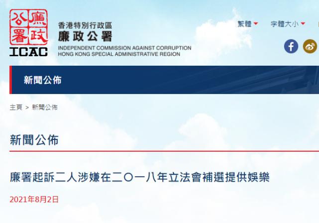廉署表示,早前接获投诉称,有人涉嫌违反《选举(舞弊及非法行为)条例》,因此展开调查,征询律政司意见后,落案起诉2018年立法会补选香港岛地方选区候选人、34岁的区诺轩,及今年59岁的歌手黄耀明。2人同被控一项在选举中向他人提供娱乐的舞弊行为,违反《选举(舞弊及非法行为)条例》第12(1)(a)条,将于5日在东区裁判法院答辩。
