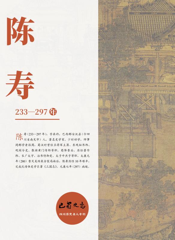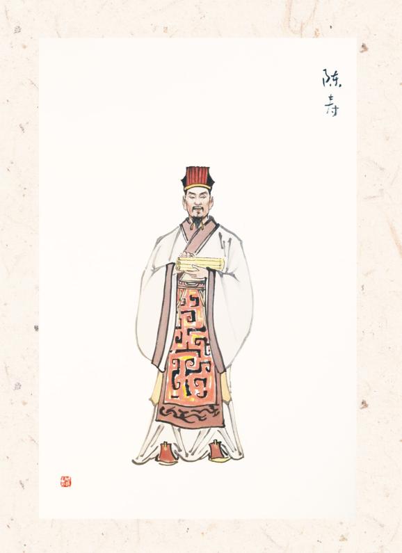 陈寿出生在巴西郡安汉县(今四川南充市),是三国时期蜀汉及西晋时期著名史学家。他自幼好学,拜同郡谯周为师,研读《尚书》《三传》,精通《史记》《汉书》。他一生屡经逆境,多遭贬黜,但始终自强不息潜心史学。