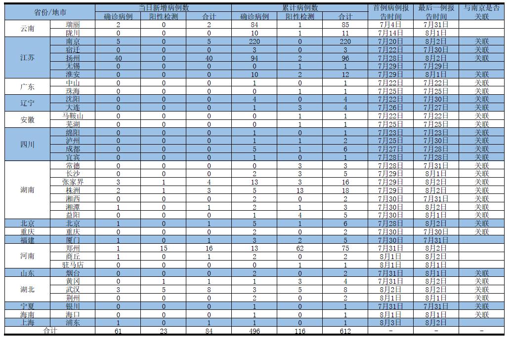 原标题:《全国本土新增61+23,高4中119,全国疫情信息发布(8月3日)》