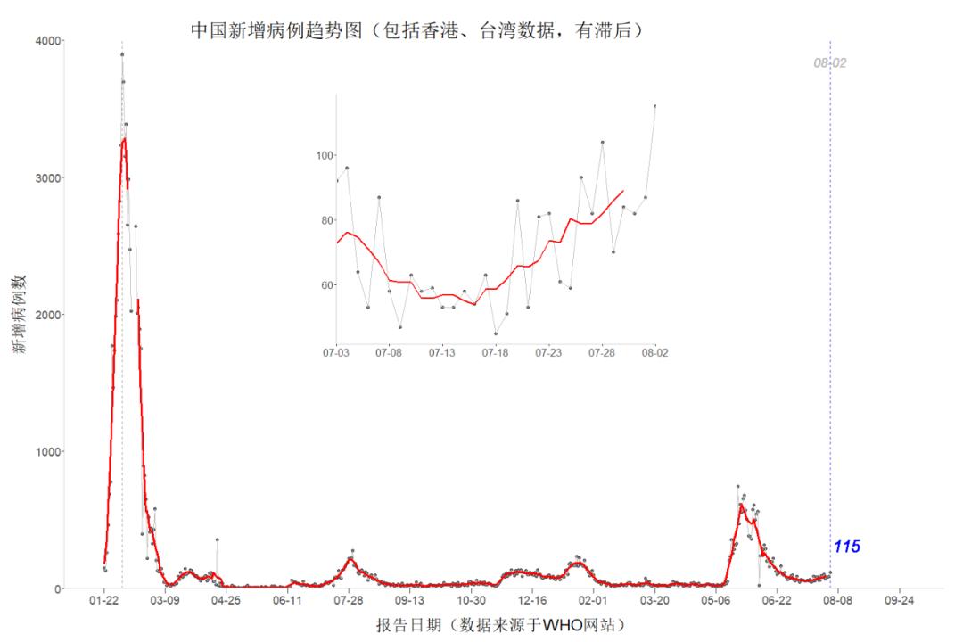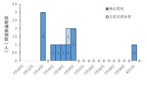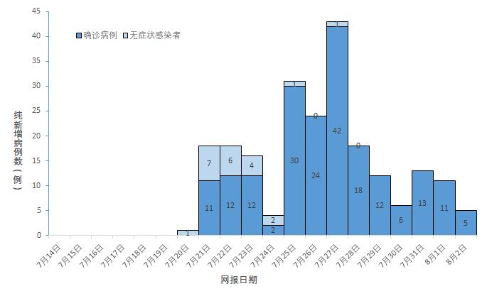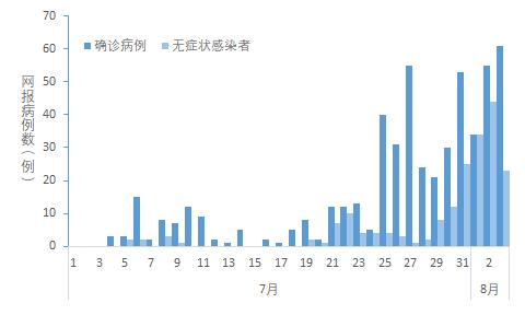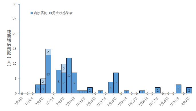 现就7月4日以来,截止8月2日24时,本土病例网报情况统计如下: