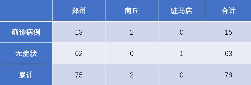 31个省(自治区、直辖市)和新疆生产建设兵团报告新增无症状感染者41例,其中境外输入18例,本土23例(河南15例,湖北6例,湖南2例);当日转为确诊病例4例(境外输入1例);当日解除医学观察14例(境外输入13例);尚在医学观察的无症状感染者499例(境外输入383例)。
