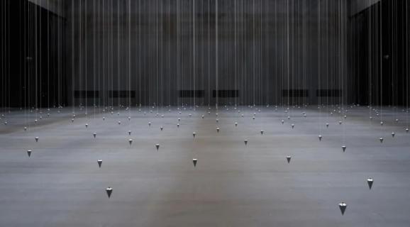 空旷的空间里,数百个圆锥形的摆锤被丝线牵引,从天顶自然垂悬,缓缓摇摆,律动的同时,它邀请观众加入其间。对参与观众的唯一指示,便是不要碰到摆锤。