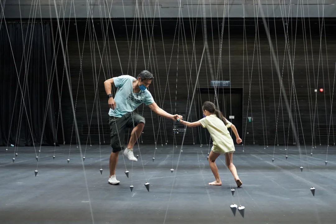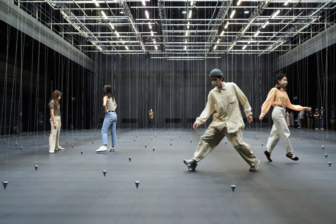 在这样的设置下,观众躲避摆锤的脚步逐渐形成独特舞蹈:仿佛人人在舞动属于自己身体所创作的独特编舞,与机械共舞,与他人共舞。