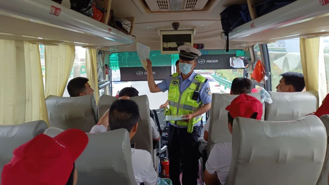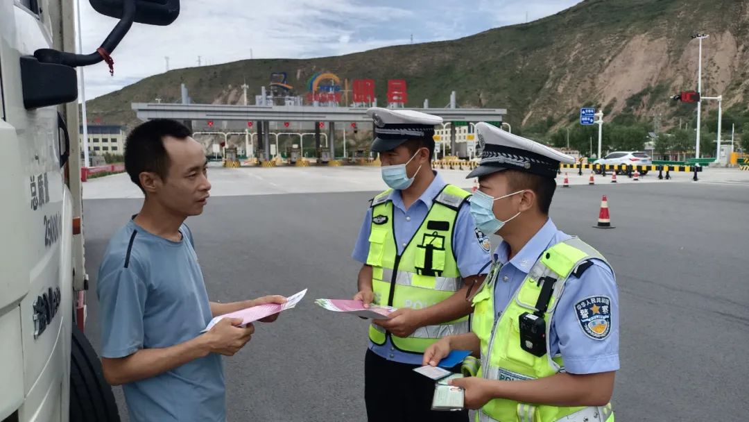 大队通过悬挂宣传横幅、发放宣传资料、播放宣传标语等方式向过往司机和乘车人员宣传交通法律法规知识,引导广大交通参与者遵守交通法规、平安出行。