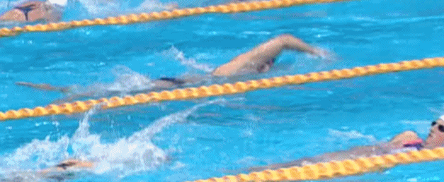 和其他运动员的矫健敏捷不同,埃里克四肢划水都不协调,而且好像不会换气,所以头一直抬在水面上,左右晃动。
