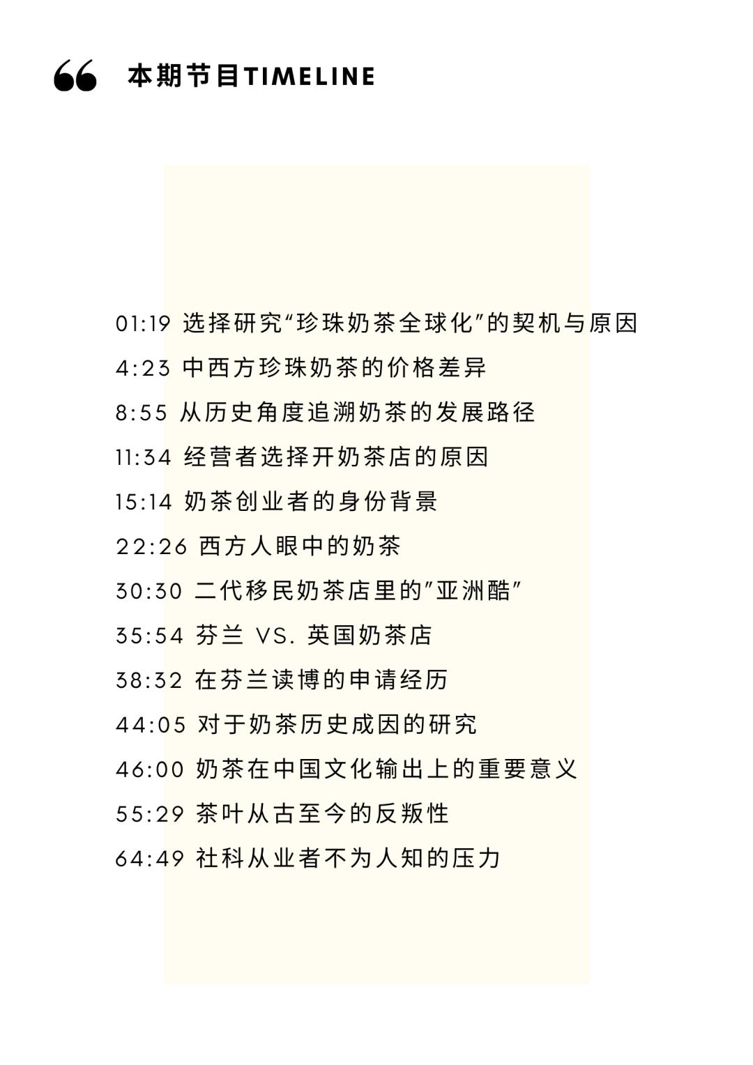 李梓新:在社会学或人类学的光谱里,提到奶茶,你们会想到几种学术思考路径?比如食物全球化,或是食物对一个社区的影响?