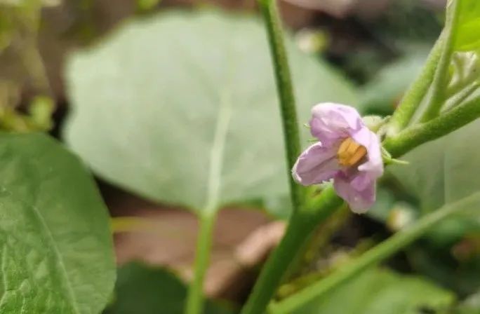 7月14日,鸡蛋茄子开花啦,第一朵可爱的小紫花。不过连日暴雨,不知道能不能挂上果。没关系,只要健康地活着,早晚能结果的!