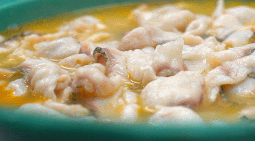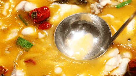 酸菜鱼肉质紧实,鲜嫩爽滑,