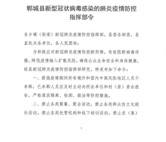 随着疫情防控形势的严峻性凸显,周口市淮阳区、郸城县发布通告,要求饭店、宾馆、小食品店等暂停营业。其中,郸城县还要求暂停一切出差活动。