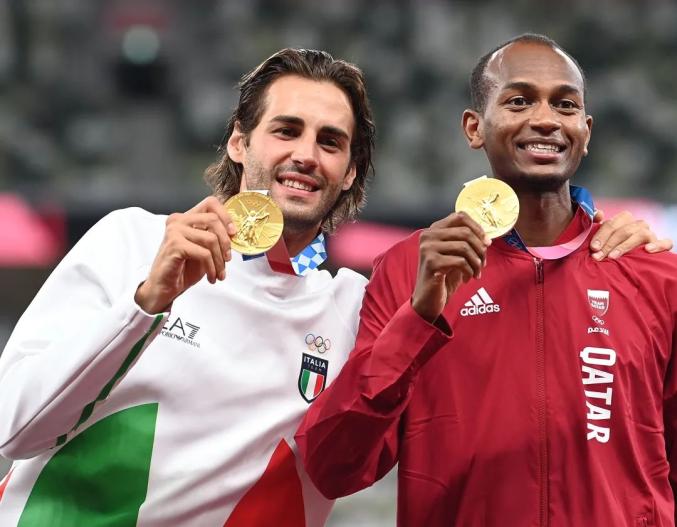男子跳高决赛,卡塔尔选手巴希姆和意大利选手坦贝里由于最终2米37的成绩一致,实在难以决出胜负,裁判询问两人是否愿意共享金牌后,二人表示同意。经组委会商定,最终同意为他们颁发双冠军。