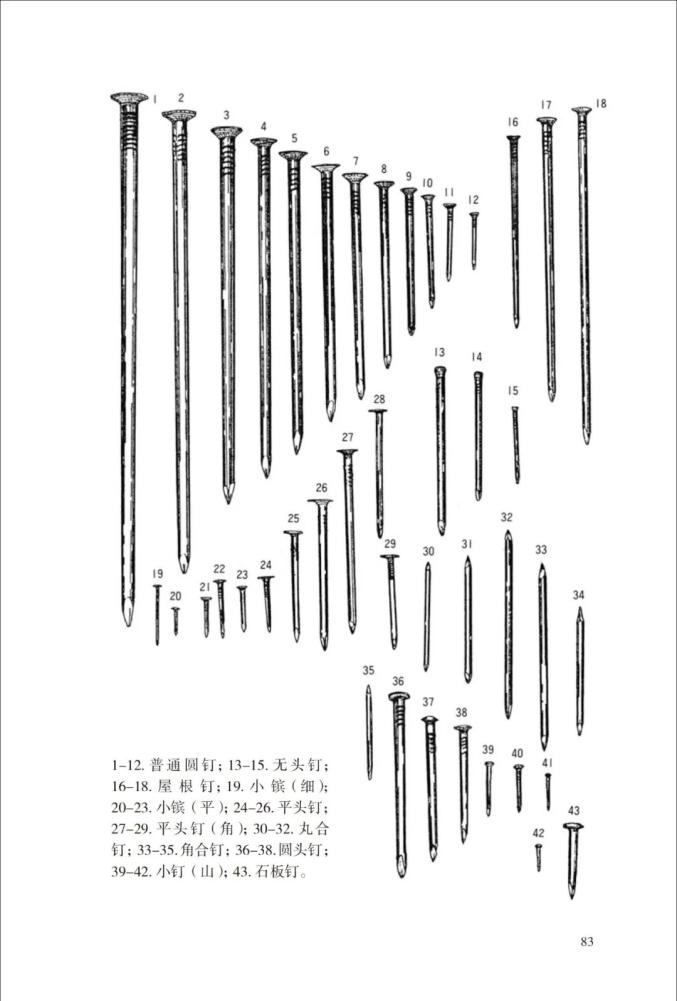 一根钉子有什么讲究?平凡社选择用43种钉子的手绘图来解释其中的细微区别。
