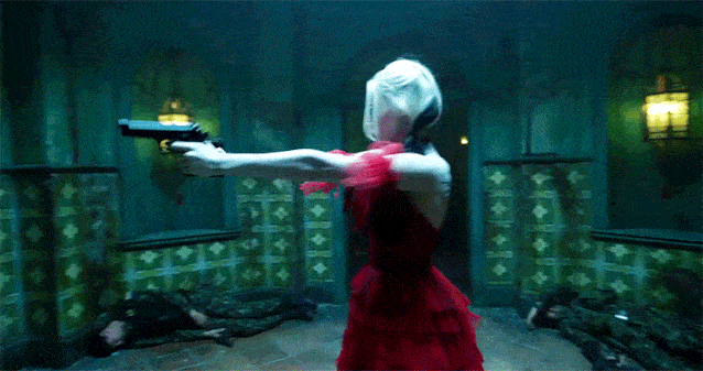 一来是避免了《猛禽小队》里一群大汉围着一个小女生正面交手却打不赢的戏码,尽量让小丑女以巧技和阴招取胜。