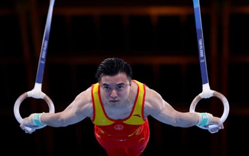 中国体操运动员刘洋在男子吊环项目中获得金牌