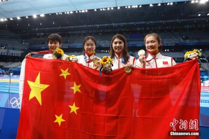7月29日,中国队杨浚瑄、汤慕涵、张雨霏和李冰洁,以7分40秒33的成绩夺得,东京奥运会女子4×200米自由泳接力金牌。