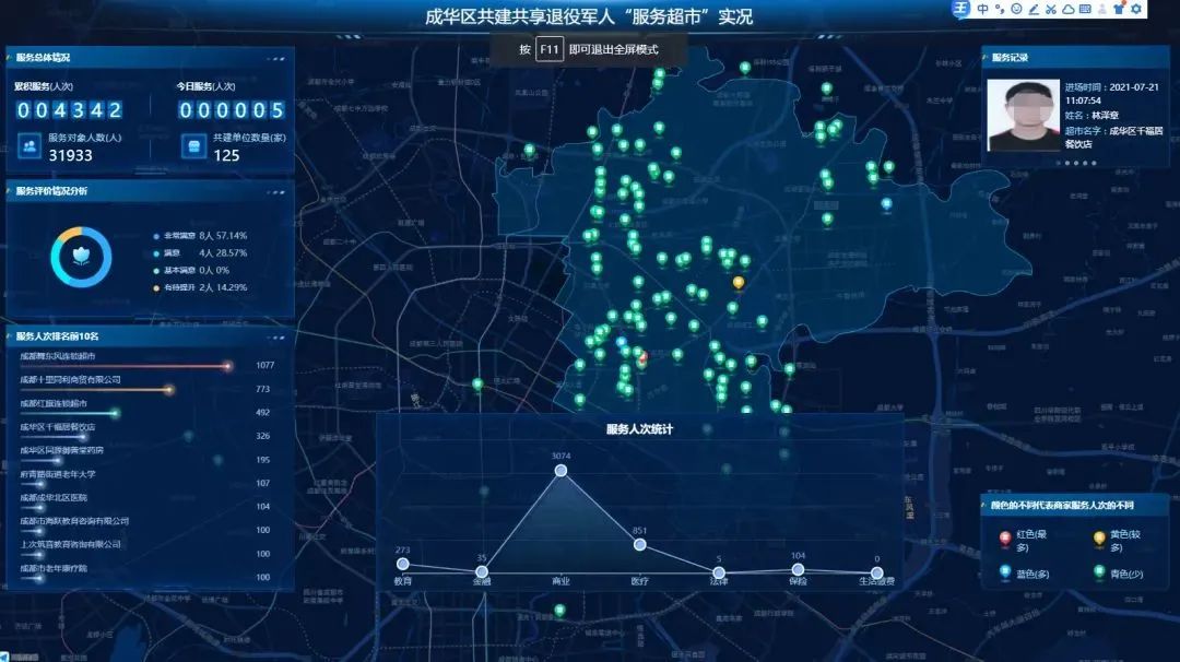 “通过在服务网点设置‘惠军服务二维码’,亮明单位共建身份、公示服务内容、甄别服务对象、收集服务评价、获取服务数据,形成服务闭环,促进服务落地。”成华区退役军人事务局相关负责人介绍道。据统计,自今年3月“服务超市”试点建设到目前全区铺开推广,退役军人享受各类惠军服务4000余人次。