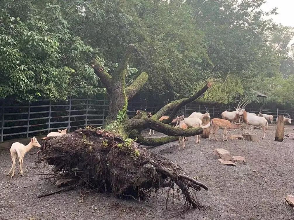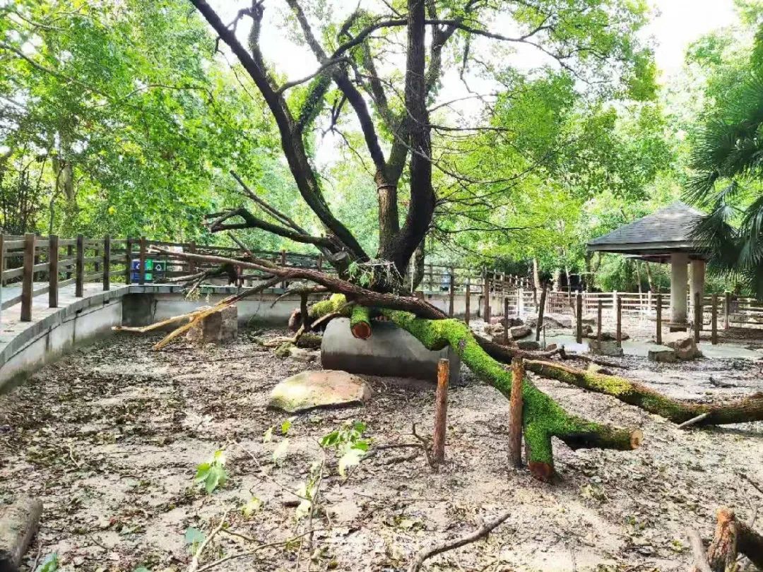 前段时间的台风天气里,部分道路和公园内的树木受大风影响倒伏在路上。而在上海动物园内倒伏的树木经过铲屎官们的改造后摇身一变,成了动物的天然丰容设施。