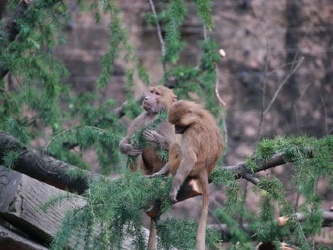 狒狒山的阿拉伯狒狒见到新搭设的栖架,一开始都小心翼翼,胆大的爬上去之后,其它的同伴也研究了起来,不一会儿纷纷开启新的栖架“包浆”之路。