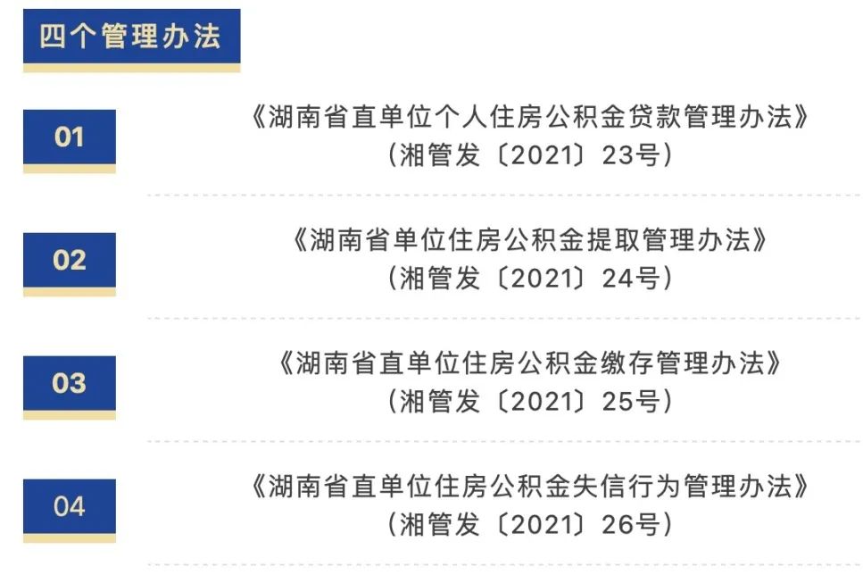 为进一步贯彻落实省委省政府“放管服”改革要求,为省直公积金缴存职工提供更加规范优质的服务,近日,湖南省机关事务管理局以省规范性文件的形式发布了个人住房公积金贷款、提取、缴存、失信行为等四个新的管理办法。