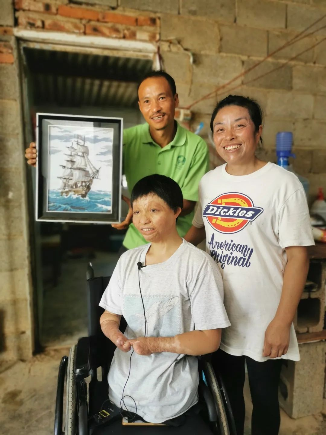 “那时候她的自学能力是相当强的,她身体的每个地方都不会动,被疤痕全部封起来了。一开始学习,她在电脑上打字都是用下巴或者是舌头,翻书也是用舌头。”爸爸心疼地说,女儿画画挺好的,其实就是那个时候打下的基础。