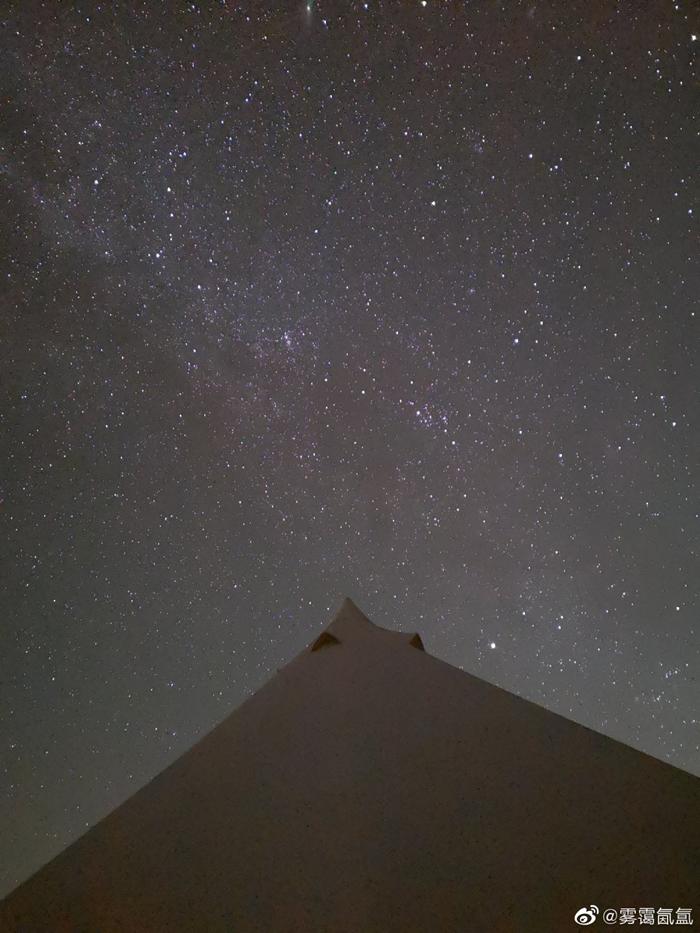 据景区介绍,这里光污染最少!欧雯慕岚营地下方有城镇,会有少量影响,但是可以有效避开。