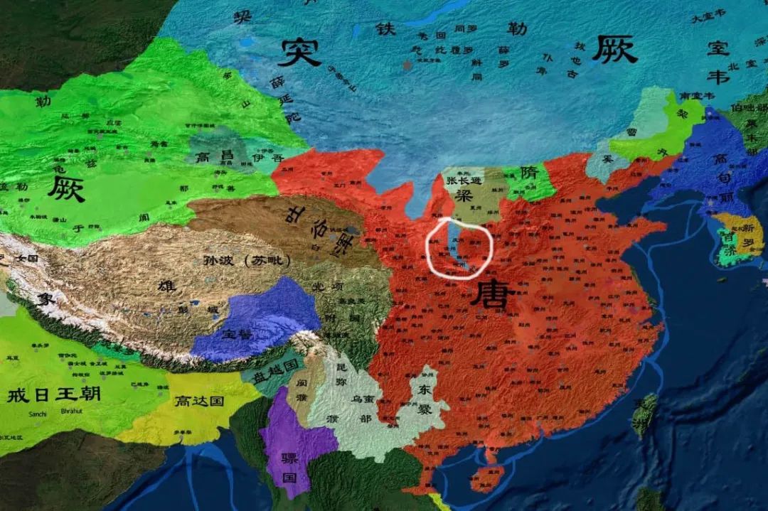 隋末群雄割据图 李渊已兼并刘武周、薛举、李轨等人