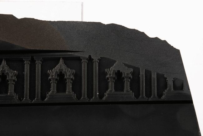 设计说明:“玲珑燕石钰腾越,极边首镇高黎峰,来凤栖息真福地,人物殷凑自在天” 作品基于腾冲风土人情,采用传统玉雕线刻工艺,使用不同线条造型为语言诉说腾越美景。通过刻黑成白的形式挖掘本土材料的质感美。