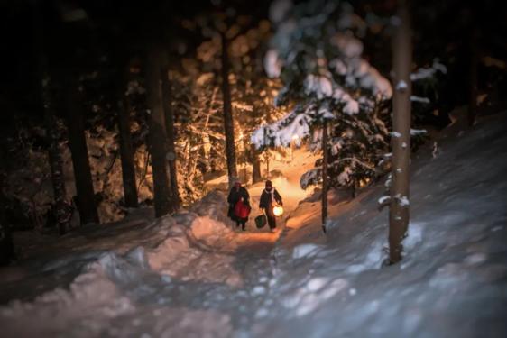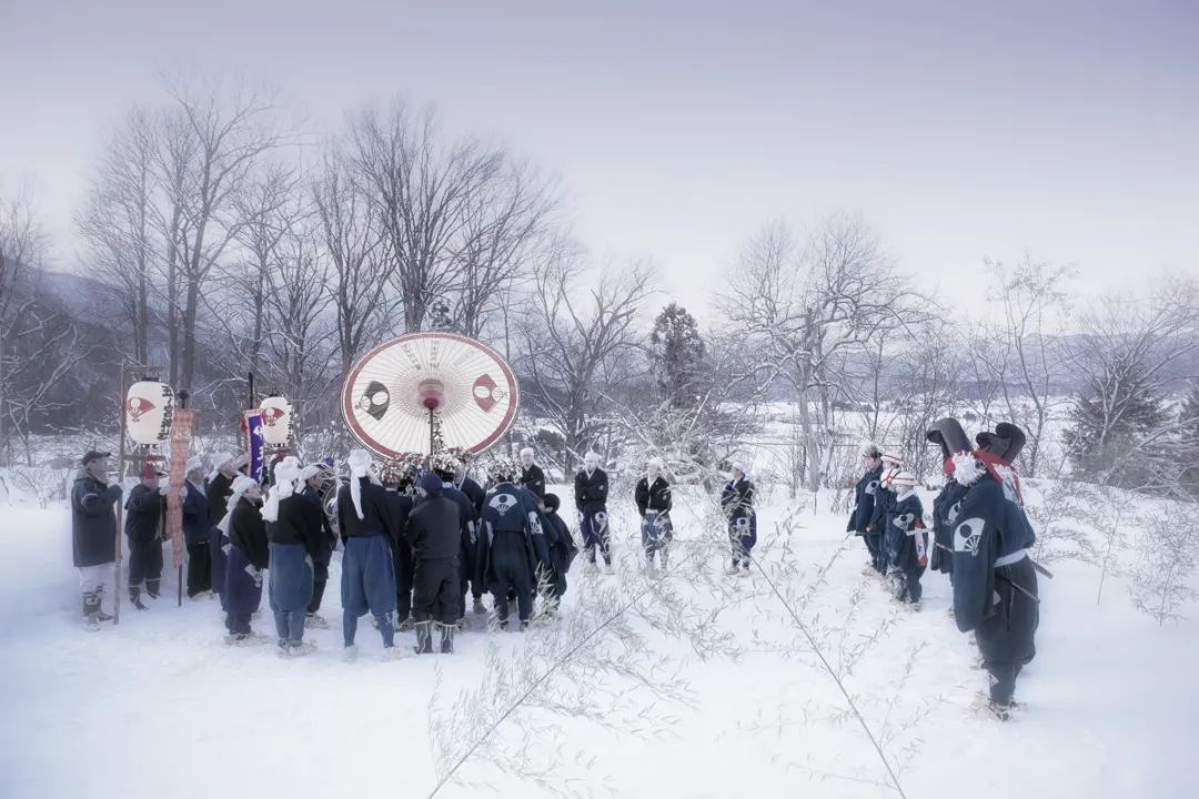 秋田县鹿角市位于青森县、岩手县、秋田县的交界处,11月下旬开始下雪,一直到3月下旬,是一个豪雪地带。祭祀活动的那天清晨,月亮还残留在空中俯瞰大地。夏季绿油油的农田被大雪完全覆盖。冬天这里有的时候气温低至零下20度,是非常严酷的环境。