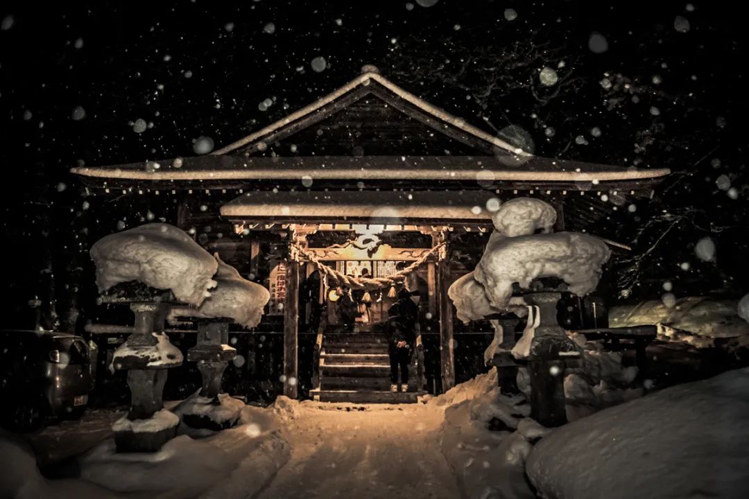 如幻想一般的夜晚,大雪中的神社。