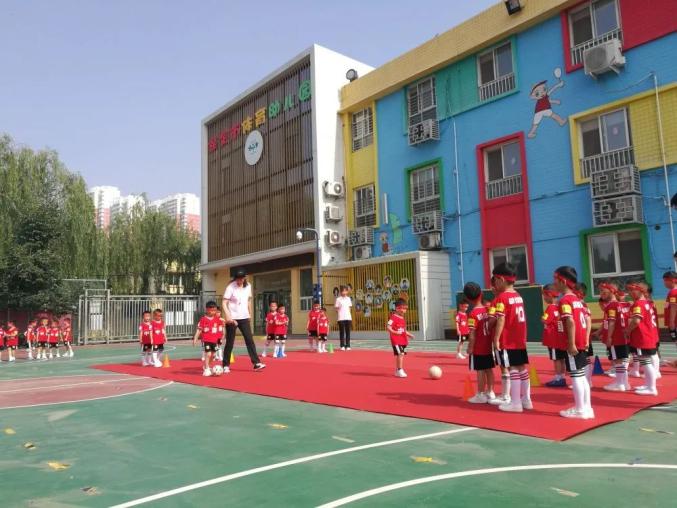 图为保定市体育幼儿园的孩子们在上体育足球课。保定市体育幼儿园供图