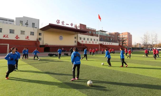 保定一中致力于体教融合创新发展,打造特色体育课堂,图为该校女足队员们正在训练。保定一中供图