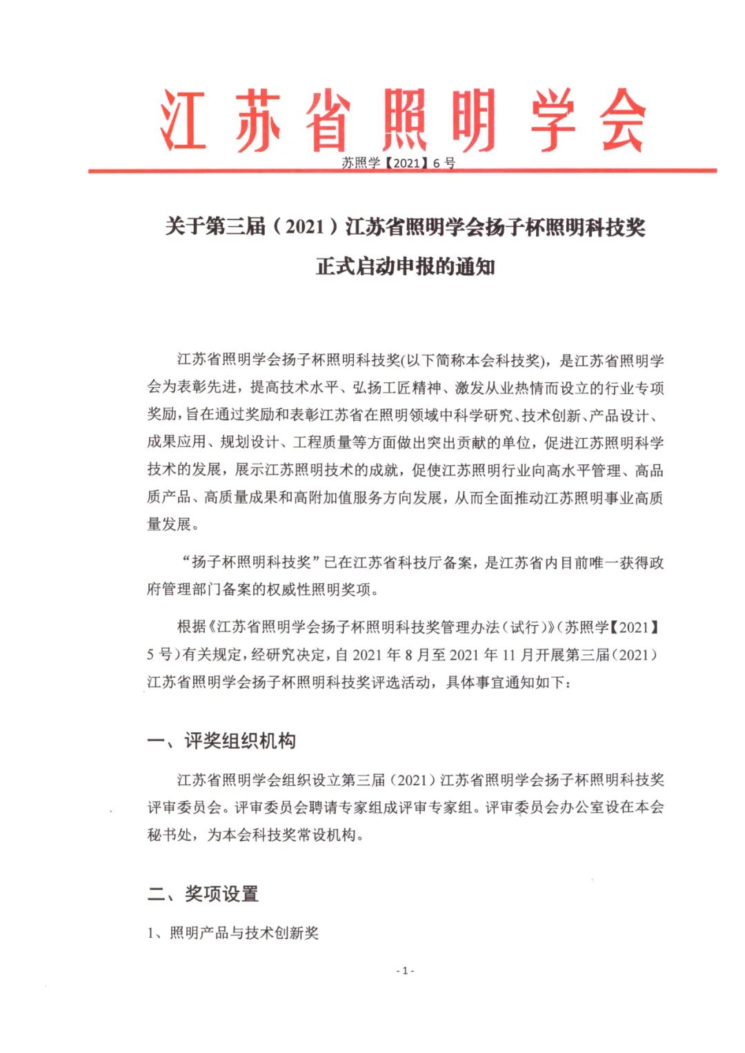 根据《江苏省照明学会扬子杯照明科技奖管理办法(试行)》(苏照学【2021】5号)有关规定,经研究决定,自2021年8月至2021年11月开展第三届(2021)江苏省照明学会扬子杯照明科技奖评选活动,具体事宜见通知。