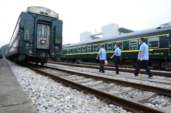 ▲8月11日,凭祥站交接所运转车长、交接员、翻译员即将对24509次守车进行全面消毒。