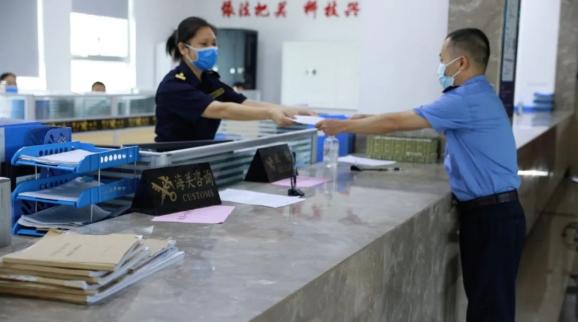 ▲凭祥站党员钟晓洪与海关办理交接工作。