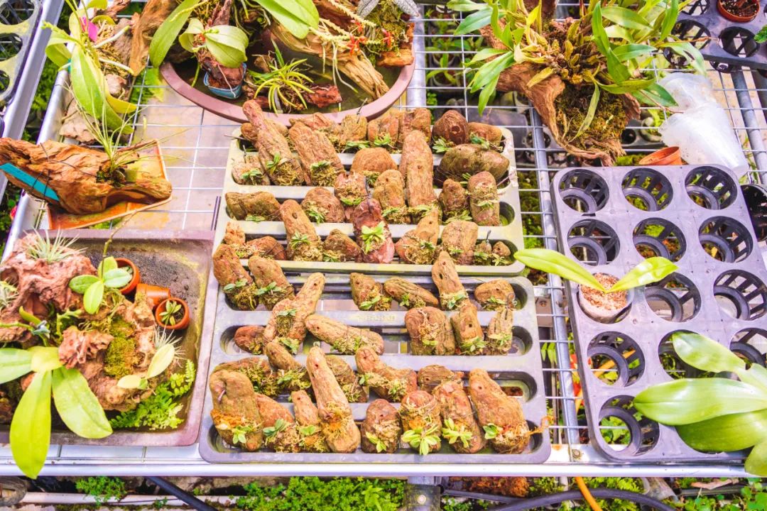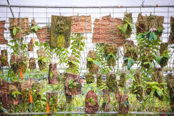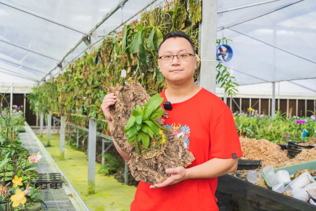 在兰花种植上,施梃灏推崇顺应自然生长的原则,在种植场内你能看到种在树皮、树干上的珍稀兰花,看起来野性十足,不似平常的兰花般亭亭玉立。