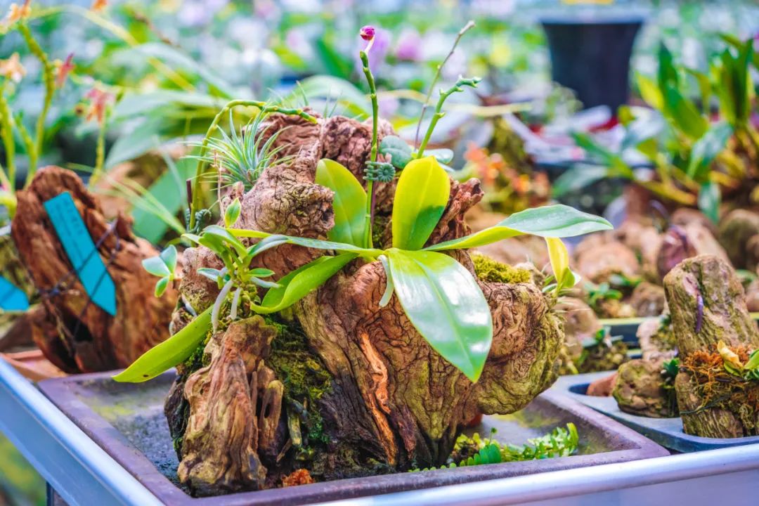 施梃灏介绍道,兰花是附生或地生草本,野生的兰花多生长于树干或岩石缝中,可以说兰花的原始生长环境并不优越。因此,种在树皮、树干上的兰花能保持更好的自然生长状态。