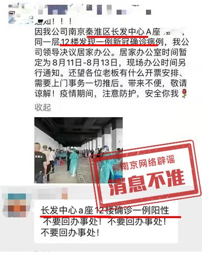 8月11日,“LG新能源,韩国来中国的人,确诊” “听说8个确诊” “秦淮区长发中心发现一例新冠确诊病例” “大行宫地铁站楼上办公楼一个保洁确诊新冠阳性” “大行宫停留或转乘人员核酸检测”等多个传言信息在微信群内传播。