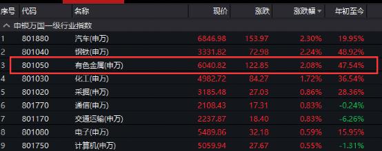 然而有色股逆势走强,申万一级28个行业中,有11个行业实现上涨,其中钢铁、汽车、有色金属行业涨幅超过2%。