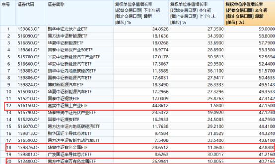 Wind数据显示,截至8月11日,跟踪光伏、新能源、新能源汽车等指数的ETF基金年内收益依然领先。但与上半年末相比,稀土、有色金属类ETF年内业绩涨幅正快速增加,部分表现已超过光伏、智能电动汽车类ETF产品。