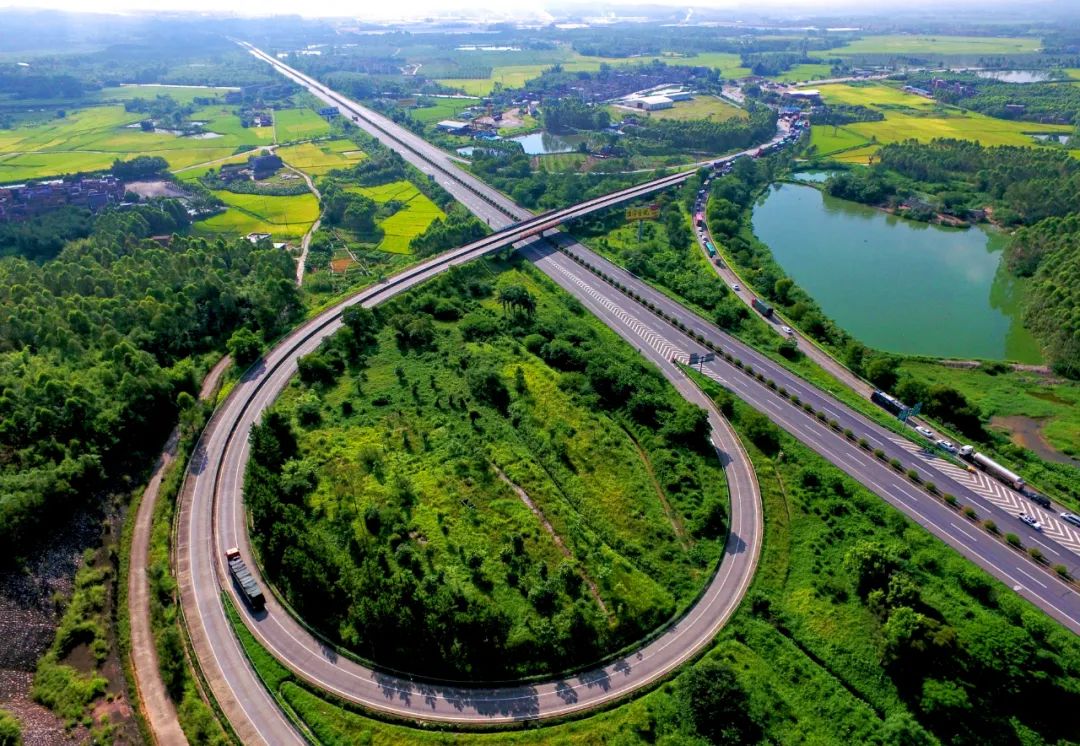 △广中江高速潮连互通下的人才岛高速立交花园。