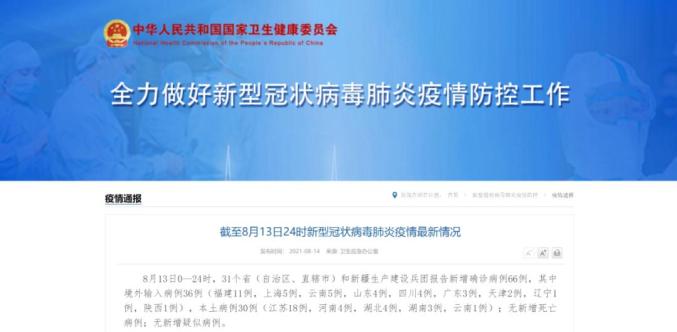 刚刚,国家卫健委通报,8月13日0—24时,31个省(自治区、直辖市)和新疆生产建设兵团报告新增本土病例30例(江苏18例,河南4例,湖北4例,湖南3例,云南1例)。
