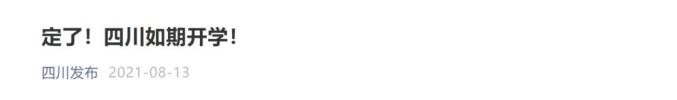 四川:暂不调整2021年学校秋季学期开学时间安排。中小学校、中职学校、幼儿园和特殊教育学校开学时间由市(州)、县(市、区)教育主管部门统筹;高校按照既定校历做好疫情防控和开学准备工作,2021级新生按照学校通知的报到时间报到。若国内、省内疫情发生重大变化,四川将根据疫情形势和防控要求及时做出调整并进行全省统一调度。