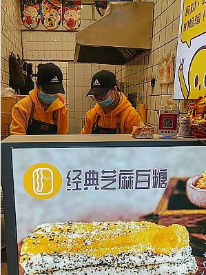 热乎乎的油条和麻糍悄然相遇,油条酥脆、糍粑软糯、芝麻香甜,三者完美地融为一体,可盐可甜,妙不可言。