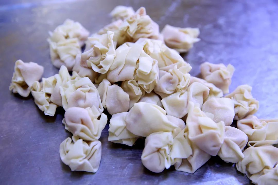 馄饨都是面点师每天现包现煮的,精选上好的瘦肉为馅,高精面粉做皮。每个馄饨都是特别饱满水灵,一个要咬上好几口才能吃完。馄饨里流出的汤汁自然淌在勺子上,吮一下,回味无穷。每日这里要卖掉五六百碗馄饨,早晨六七点是小店用餐的高峰,不大的店铺内总是座无虚席。