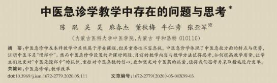 中医急诊的衰落也许与教学有关。内蒙古医科大学中医学院的陈琨、吴昊等发表的文章《中医急诊学教学中存在的问题与思考》中表示,中医急诊学在本科教学中属于考查课程,以课堂理论教学为主,以实训实操教学为辅。“在教学中发现学生对本课程的重视程度低,对中医能够治疗急症缺乏信心,甚至对开设本课程的必要性持有怀疑。”