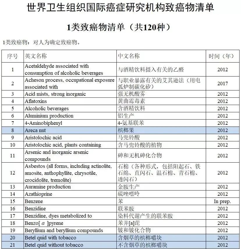 和烟酒、砒霜等同列为一级致癌物