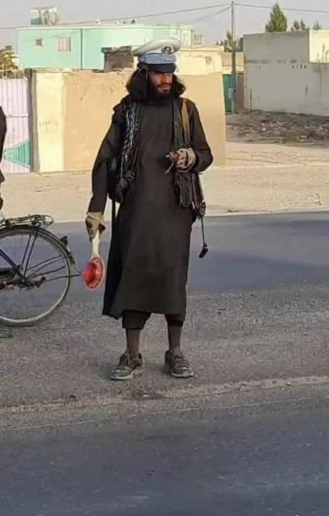 塔利班在喀布尔郊区指挥交通。受访人提供
