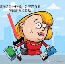 你看看上图,虽然这位太太手提着重(有负重和用力),但肘关节没有弯曲,上臂的肌肉没有缩短,这就叫等长收缩。