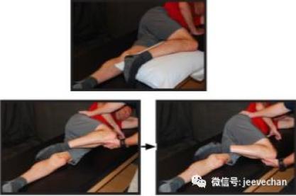 ❶ 想象你的腿是块木,让理疗师或家人,轻柔地将患侧腿从中立位(腿放正)向里面推(内旋)。